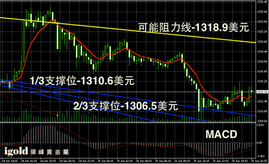 技术回顾:早评中我们特别提醒投资者关注1318美元阻力线,认为一旦金价跌破这一支撑,则可能会小幅下滑,结果后期走势与我们的研判相符。另外,金价在1310美元附近的强力支撑我们也精准预测。