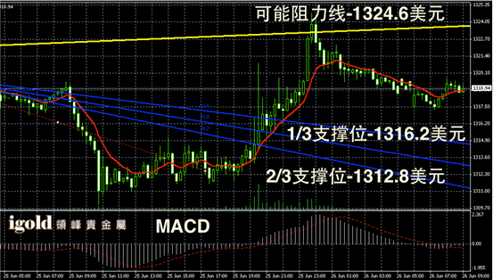 技术回顾:我们在昨晚的评论中,特别指出金价会在昨晚小幅上扬,且会向1315美元线以上靠拢。结果深夜至今天凌晨的走势与我们的研判完全一致,且高位阻力上我们也给出了精准的预测。