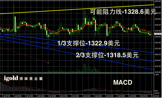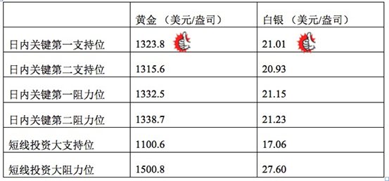 技术回顾:我们在昨晚的评论中指出金银价格后期或小幅下探,昨晚至今天凌晨的走势与我们的预测相符,且低位支撑线上我们也给出了与市场一致的数据。