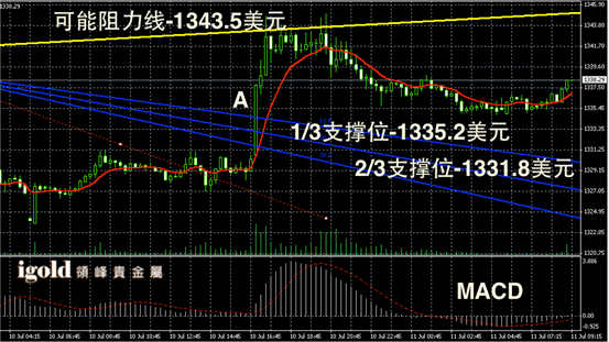 技术回顾:晚评中,我们论证贵金属市场会进一步对高位阻力进行测试,并且指出金价一旦持稳1330美元,会不断向1350美元线考虑,昨晚的走势再次被我们言中。