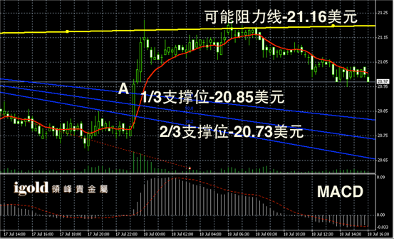 白银阴阳烛录得阴烛聚焦明显,后期小幅低于红色日均线,短线MACD显示弱势空头主导,白银价格或进一步小幅下探,整体或向20.8美元线附近靠拢。
