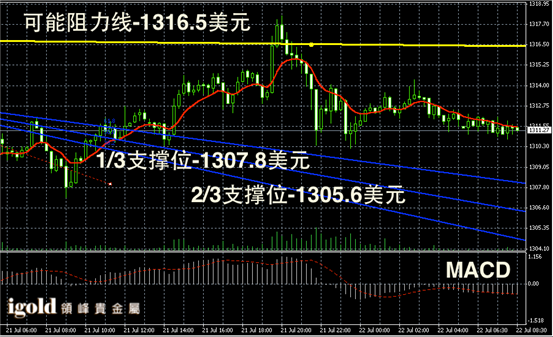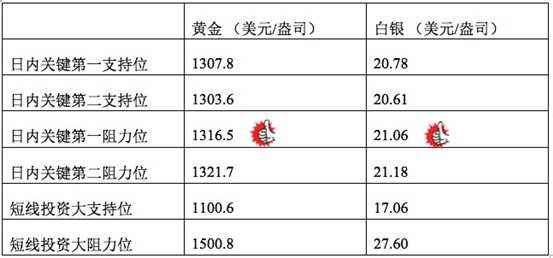 技术回顾:我们晚评中明确指出,金价会进一步小幅上探冲击1315美元线,昨晚市场的走势与我们的研判完全一致,且高位阻力上我们也给出了准确的预测值。