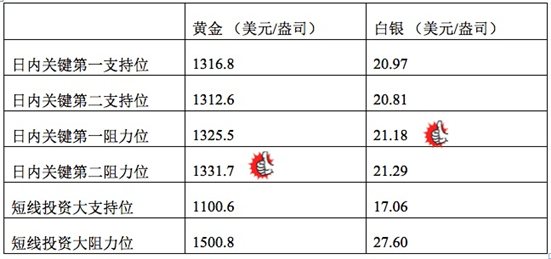 在支持位和阻力位上,可参考以下数据