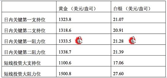 在支持位和阻力位上,可参考以下数据