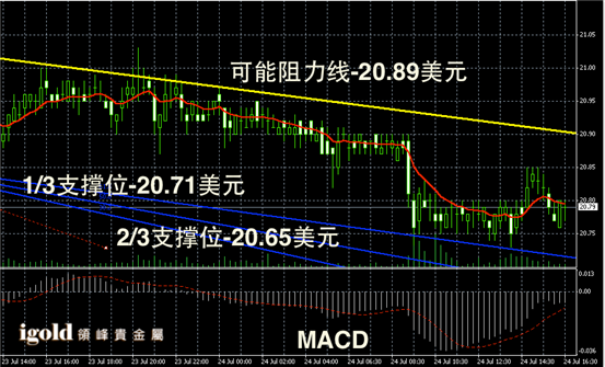 白银阴阳烛录得末端小幅持稳,不过短线MACD仍然显示空头主导,白银价格或继续小幅向20.7美元线附近下行。