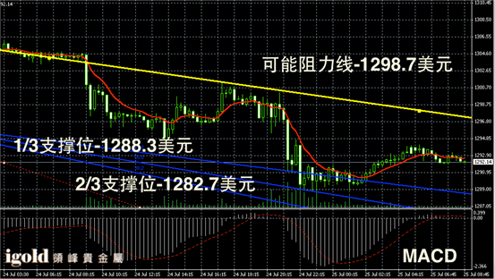 技术回顾:我们在昨晚的评论中,无论是从基本面上,还是技术分析上,都指出金银价格会进一步下行,且明确指出金价会向1290美元线看跌,晚上金银价格的走势便验证了我们的研判,且低位支撑上我们也给出了精准预测。