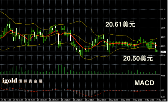 白银布林轨道线中线和下线小幅下探,且短线MACD显示空头正在缓慢积累,白银价格或不断小幅下探至20.5美元附近。