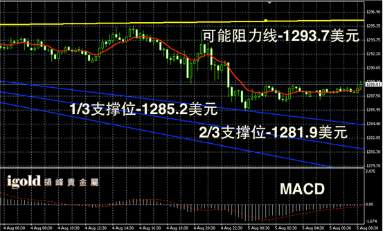 黄金阴阳烛录得阴烛增多,回落趋势明显,后期柱体收短,处于均线中位,显示低位持稳,短线MACD录得呈中性,金价短线或首先在1288美元附近持稳,振幅后不断收窄,并且可能有1-2美元的小幅回调。