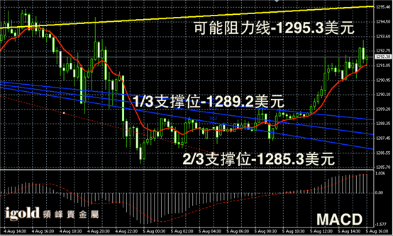 技术回顾:午间评论时,我们指出金价会向1293美元附近靠拢,结果下午的走势与我们的预测完全一致。