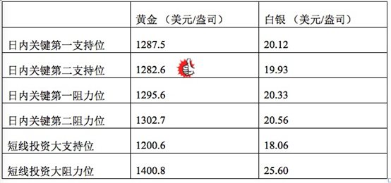 在支持位和阻力位上,可参考以下数据