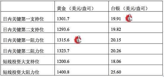 在支持位和阻力位上,可参考以下数据