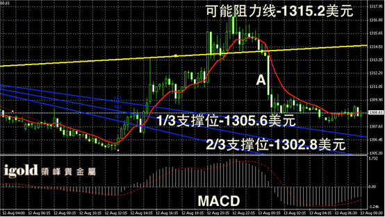 黄金阴阳烛录得反弹后,阴烛增多,末端柱体收短,处于红色日均线中位,短线MACD显示弱势空头主导,黄金价格上午或在1308美元附近持稳,若跌破1307美元,或进一步下行至1305美元,持稳则可能冲击1310美元。