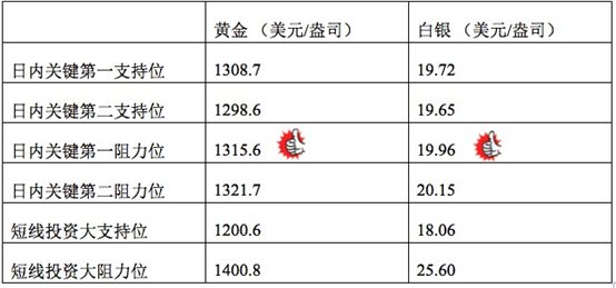 日内关键第一阻力位 | 1319.6 | 19.98 |