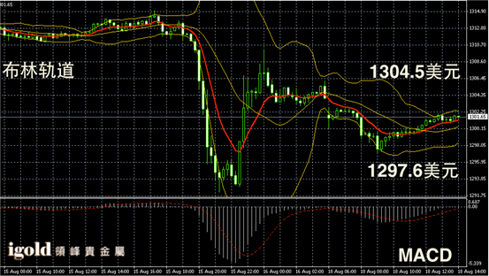 黄金阴阳烛录得布林轨道收窄,柱体也处于均线中位,整体收平,短线MACD显示呈中性,下午市场或继续小幅反弹至1303美元附近。若跌破1300美元,则可能进一步下行至1297美元附近。