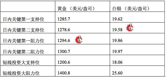 在支持位和阻力位上,可参考以下数据