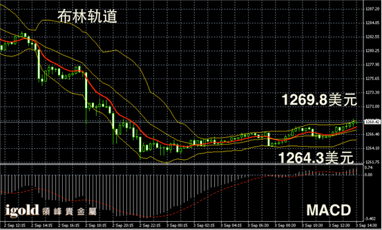 技术回顾:早评中,我们分析判断金银价格上午或不断持稳,并且会小幅反弹,且明确给出了金价或攀升至1268美元附近的预测,这些都与上午的运行趋势相符。