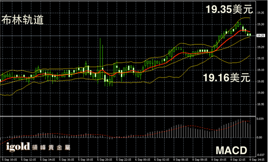 白银阴阳烛录得反弹后,柱体小幅低于红色日均线,短线MACD显示弱势多头主导,布林轨道末端录得收平,白银价格下午或围绕19.25美元上下盘整。