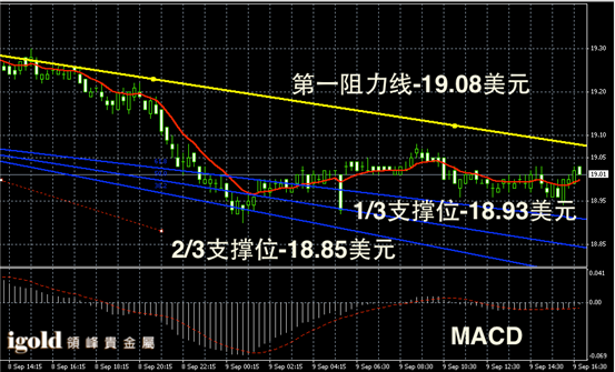 白银阴阳烛录得聚焦明显,整体处于红色日均线中位,短线MACD显示呈中性,白银价格晚上或继续围绕19美元线附近持稳。