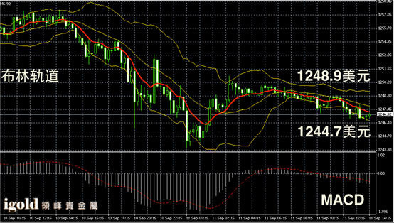 黄金阴阳烛录得布林轨道收窄,且区间下行,末端阴烛增多,短线MACD显示弱势空头主导,下午金价或不断测试1246美元支撑,多头建议以1248美元为参考,不能突破则偏于下探。