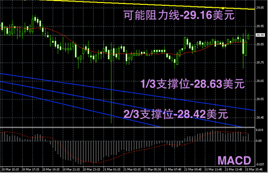 白银阴阳烛录得柱体较短,前后比值差异小,整体影线不明显,预期或继续区间窄幅震荡。后期MACD多头有积聚趋势,或开始小幅的反弹上扬。