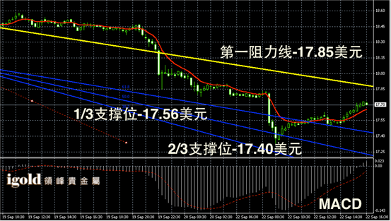 白银阴阳烛录得柱体小幅高于红色日均线,短线MACD显示弱势多头主导,白银价格短线或不断在17.7美元附近持稳,若美指不继续攀升,市场或向17.8美元附近靠拢。跌破17.63美元则可能滑落至17.5美元。