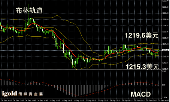 黄金阴阳烛录得布林轨道收平,阴阳烛间隔出现,没有明显的多空趋势,短线MACD显示呈中性,下午美指若继续攀升,黄金价格或承压下行,美指若回落市场或尝试反弹至1220美元线附近。