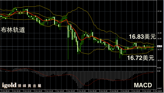 白银阴阳烛录得布林轨道收平,且柱体高低交叉于红色日均线,短线MACD显示呈中性,白银价格若突破16.85美元,则可能向16.9美元附近反弹,若不能突破或围绕16.8美元附近整理。