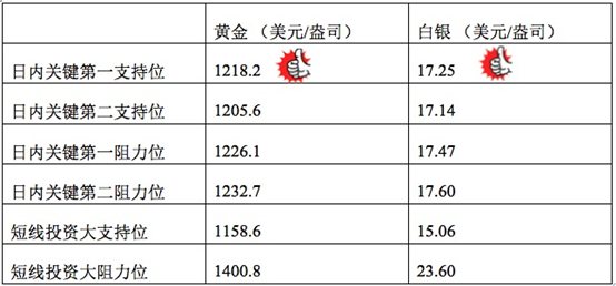在支持位和阻力位上,可参考以下数据