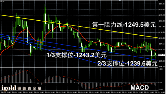 黄金阴阳烛录得小幅回落,末端柱体低于红色日均线,短线MACD显示弱势空头主导,黄金价格晚上或小幅下探1245美元附近,若跌破或继续下行,美国数据公布前后的美指或决定金价的走势。