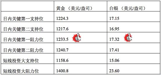 在支持位和阻力位上,可参考以下数据