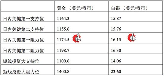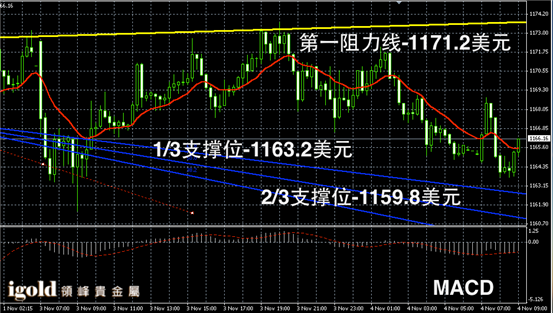 黄金阴阳烛录得冲高回落,后期阴阳烛间隔出现,高低交叉于红色日均线,短线MACD显示弱势空头主导,金价上午或不断持稳1166美元,美指若回落金价可能再次尝试突破1170美元。