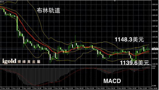 黄金阴阳烛录得均线小幅上探,布林轨道整体变宽,短线MACD显示呈中性,黄金价格下午或在1144美元附近不断持稳,并且尝试攀升至1145美元附近。