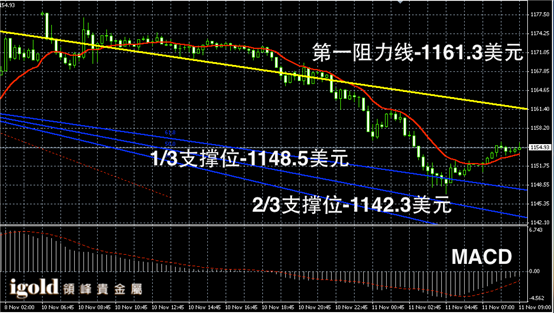 黄金阴阳烛录得下行后,末端出现U型反弹,末端阳烛增多,但是柱体较短,短线MACD显示呈中性,黄金短线走势或不断持稳,偏于向1158美元附近反弹。美指若反弹,金价或再次承压。
