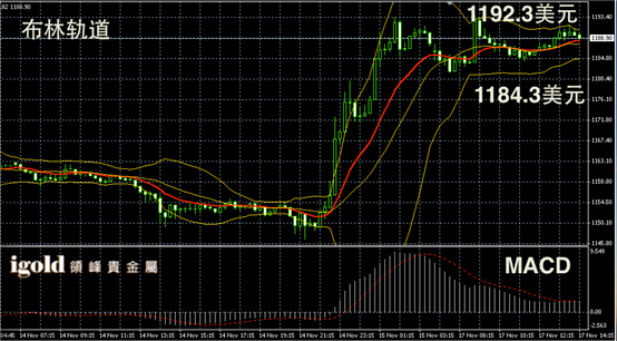 黄金阴阳烛录得布林轨道收平,柱体变短,且整体处于红色日均线中位,短线MACD显示多头回落,黄金价格下午或在1189美元附近持稳,整体或围绕1184-1192美元区间震荡。多头未能突破1192美元前,市场偏于小幅回落。