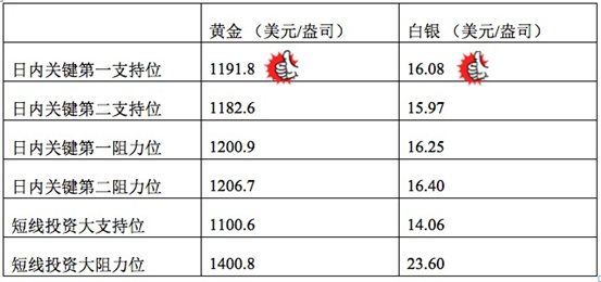 目前市场横盘运行趋势明显,金银日线阴阳烛末端录得十字星,显示反弹放缓,且小时线录得柱体较短,且聚焦在红色日均线中位。金银价格短线或继续在区间横盘运行,黄金价格可关注1192-1196美元区间,白银价格可关注16.05-16.27美元区间。下午若美指深度回调,金价一旦突破1196美元,涨幅或扩大,否则或继续横盘运行。