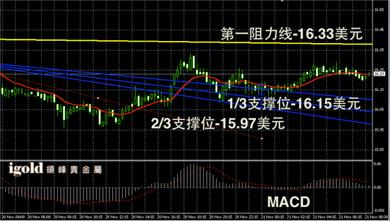 白银阴阳烛录得小幅反弹后再次收平,后期阴烛增多,整体柱体较短且处于红色日均线中位,短线MACD显示呈中位,白银价格短线或小幅下探16.2美元附近,持稳或在16.25美元中位盘整。