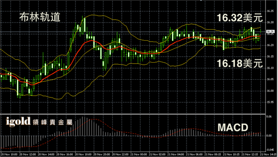白银阴阳烛录得柱体较短,整体处于红色日均线中位,短线MACD显示呈中性,白银价格下午或继续围绕16.25美元附近进行整理。
