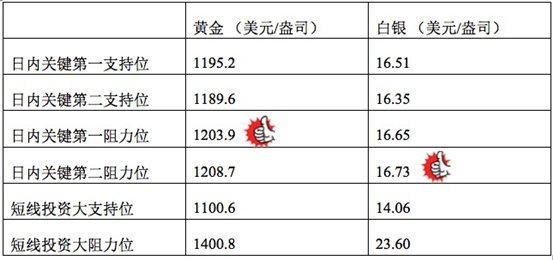 技术回顾:昨晚的评论中,我们指出贵金属市场会继续在相应的区间运行,其中预测在1196-1202美元区间整理,这一判断与昨晚的走势完全相符。