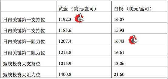 在支持位和阻力位上,可参考以下数据