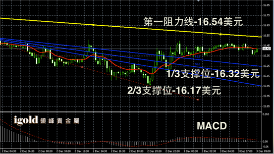 白银阴阳烛录得回落后,末端阳烛回升,逐渐高于红色日均线,短线MACD显示呈中性,白银价格或不断持稳16.4美元附近,高位16.5美元附近阻力较大,突破前或偏于横盘运行。