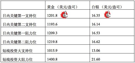 技术回顾:早评中,我们提醒投资者密切留意1203美元支撑位,指出探破后会继续小幅下行,这一预测与上午的走势一致,且低位支撑上我们也给出了精准的预测。