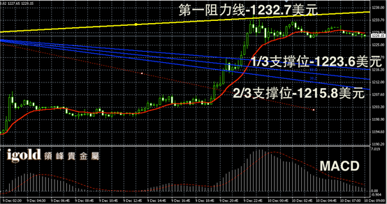 黄金日线走势末端录得阳烛,且回升至此前下跌的对称位置,长线RSI录得61,暂时持平,小时线上则在进入超卖区间后有所回落,长线MACD显示多头主导,但是已经从高峰回落。日线走势黄金价格或回调至1225美元附近,新的运行区间拓展至1223-1231美元区间。