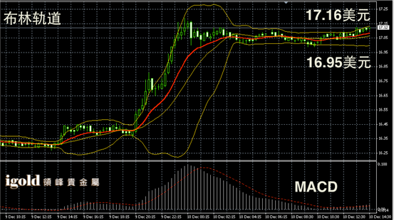 白银阴阳烛录得布林轨道区间较平,后期柱体较短,且聚焦在红色日均线中位,短线MACD显示弱势空头主导,白银价格明显缺乏反弹动力,在突破17.2美元前,短线或继续在17.1美元附近横盘运行。