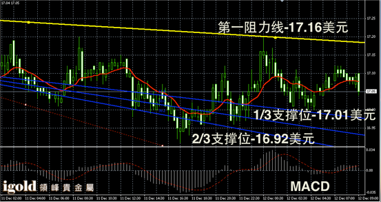 白银阴阳烛录得聚焦在红色日均线中位,横盘运行趋势明显,短线MACD显示多空反复,白银价格短线或继续在17.1美元附近盘整。