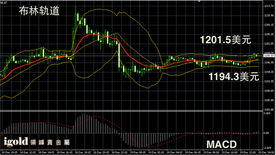 黄金阴阳烛录得柱体收短,整体处于红色日均线中位,短线MACD显示呈中性,黄金价格下午或继续在1198美元附近盘整,短线在未突破1200美元之前,市场仍偏空运行。