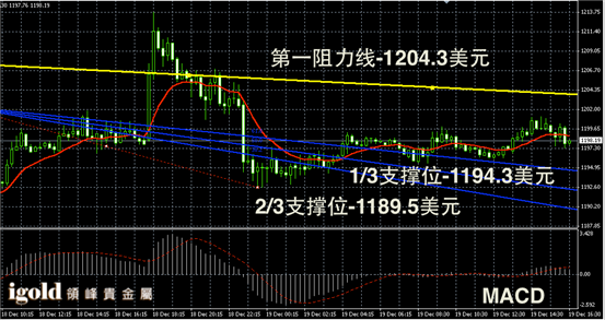 黄金阴阳烛录得整体较短,且高低交叉于红色日均线中位,短线MACD显示呈中性,黄金价格晚上或继续浮动在1198美元附近,晚上美指如果再次反弹,低位支撑建议首先参考1194美元附近,若跌破或再次下探1186美元附近。