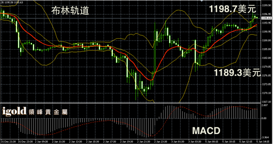 技术回顾:早评中,我们预测金价会突破1192美元附近,进而向1195美元附近攀升,这一判断与上午的走势完全一致。