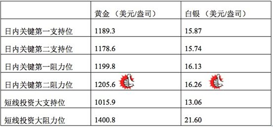 在支持位和阻力位上,可参考以下数据