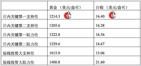 在支持位和阻力位上,可参考以下数据