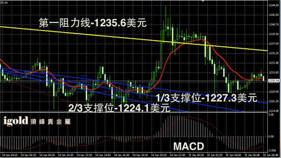 技术回顾:昨晚的评论中,我们指出金价整体或在1230美元附近持稳,这一判断与昨晚至今天凌晨的走势相一致。